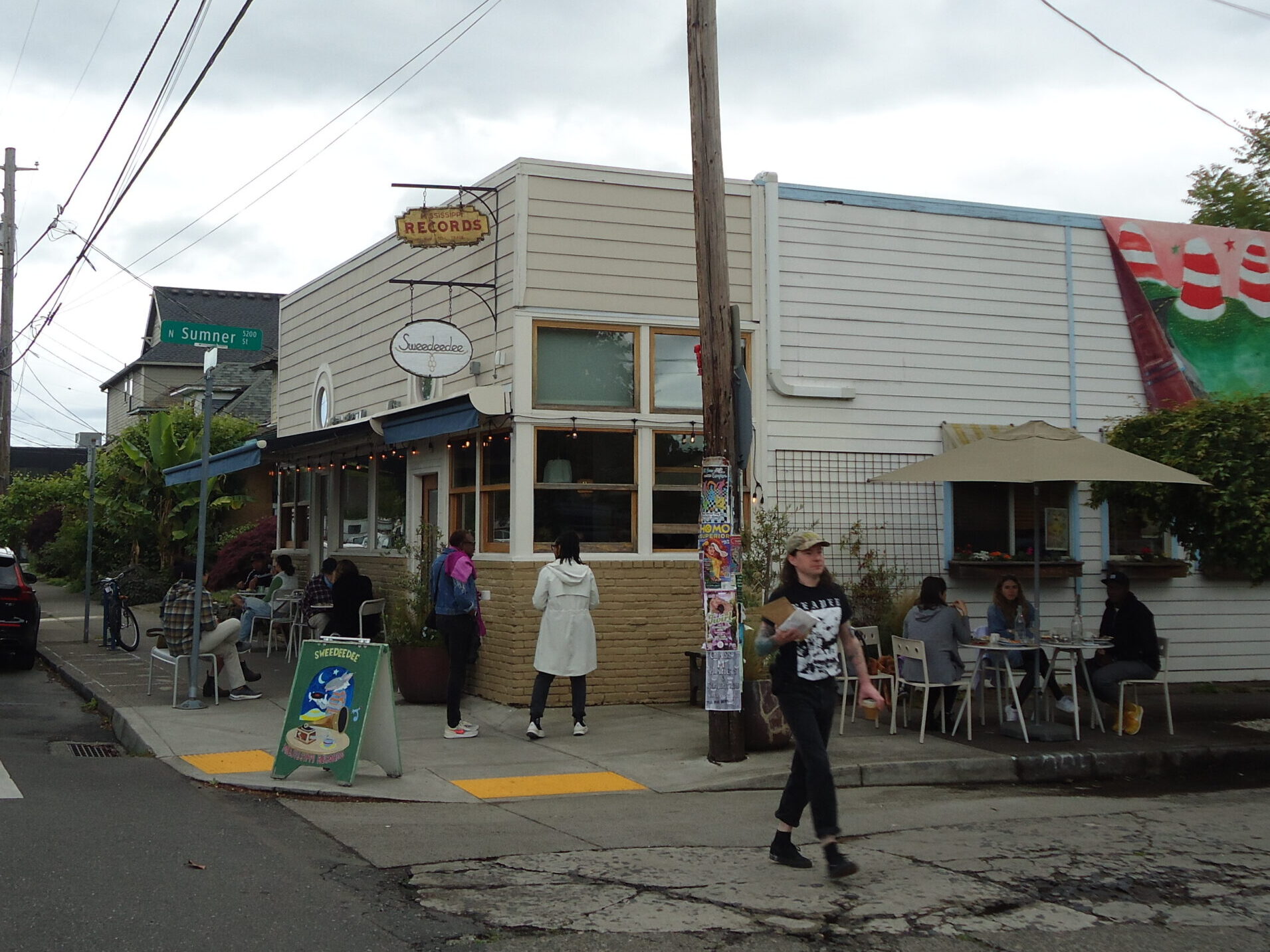 ミシシッピ地区は、ポートランドの北部にある人気のエリア。古い建物をリノベーションしたカフェやレストラン、雑貨屋、レコードショップなどが並んでいるストリート。地元の人も観光客も集まる、にぎやかでクリエイティブな雰囲気の街並みです。ミシシッピレコーズへ。