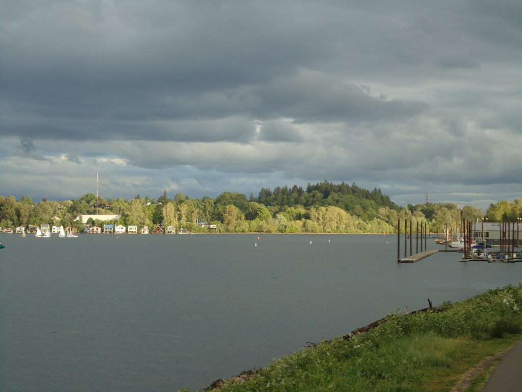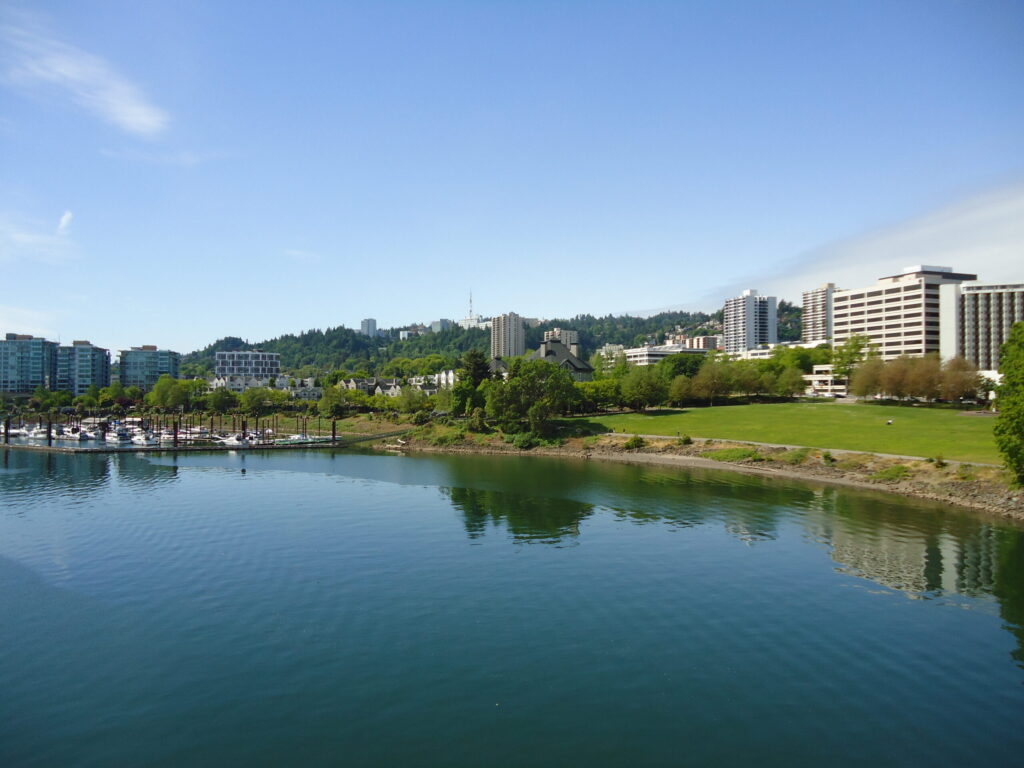川の対岸にきた。ウィラメット川がずっとみえるコース。曇天が惜しい。