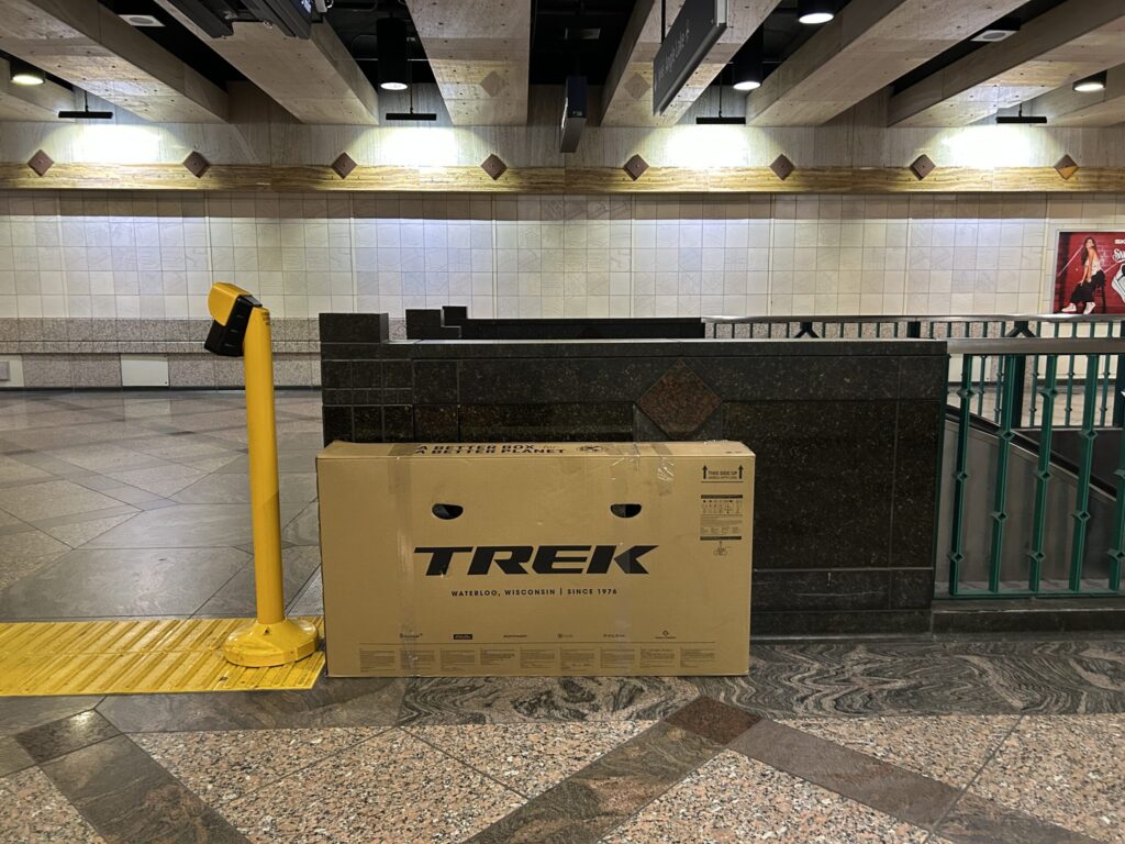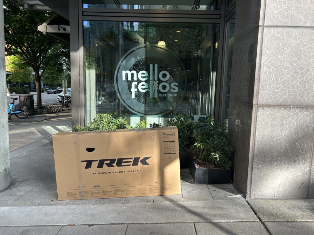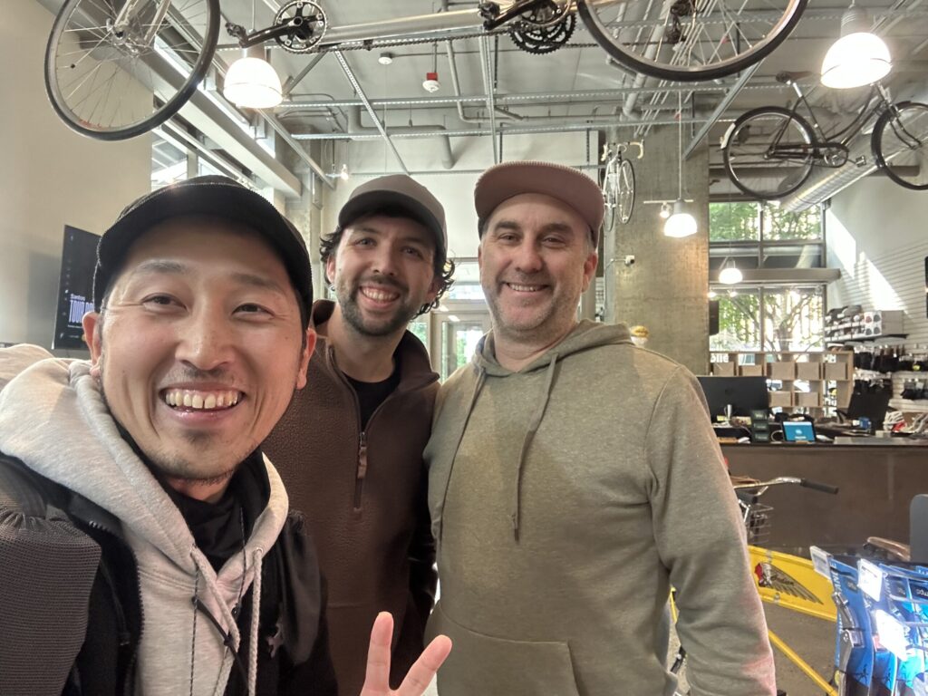 レックスさんが「タコマ空港までは、ライトレールのウエストレイク駅から一本で行けるよ。駅はここから徒歩10分だから大丈夫」と教えてくれた。いただいたTREKのバイクボックスが心強い。これで日本まで安全に持ち帰れる。最後に、Keep it mellow(ゆるくいこう)と書かれたワッペンをいただいた。メロー・フェローズのみなさん、ありがとうございました!